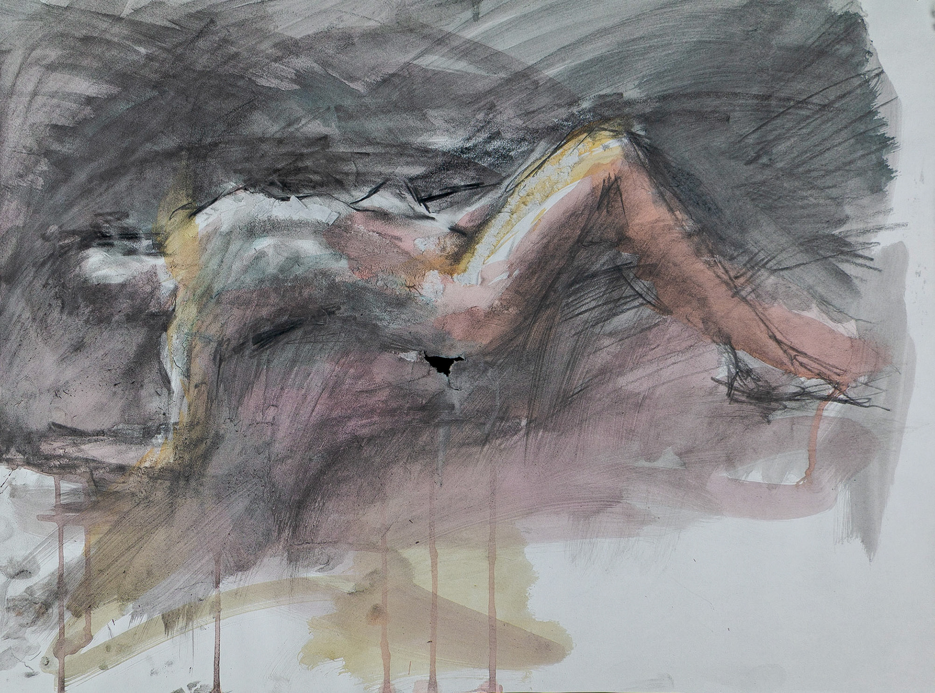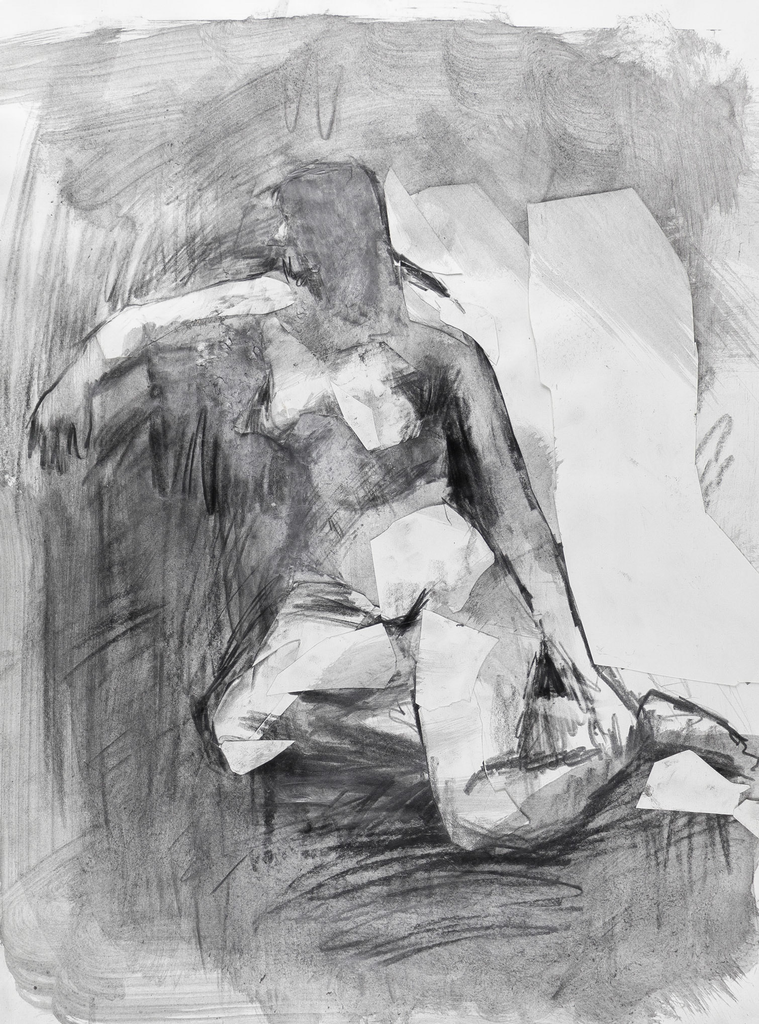 18"x24" Water Soluable Graphite and Cut Paper on Paper, 2016
